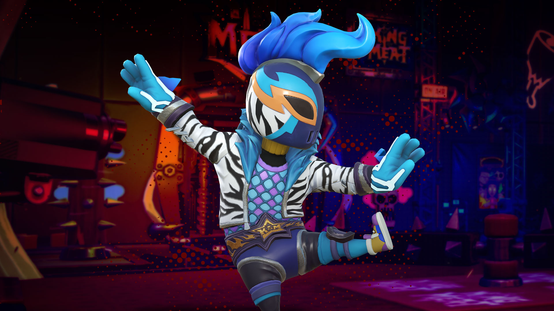 Visit the Choose your Champion event page now to pick the The Power Gamer, Exclamation, Luchadora, or Luchador outfit, stream King of Meat on Twitch, and reward your viewers with limited-time Drops starting on October 8. How will you celebrate the launch of King of Meat with your community?