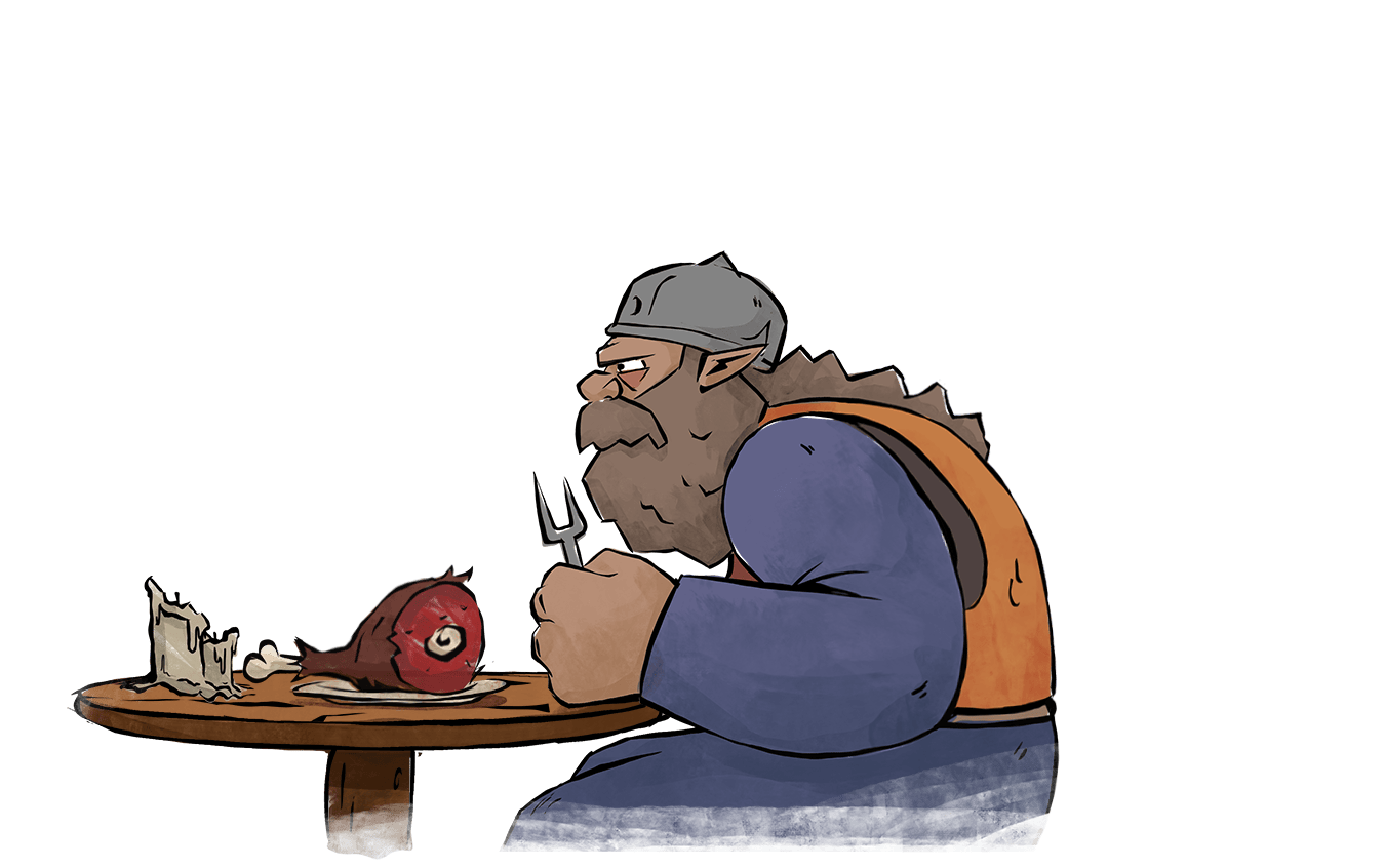 Os Grelhudos, temidos adversários que os Desafiantes agora encaram nas masmorras, nem sempre foram seus oponentes. Durante um tempo, são eles os grandes cronistas da história do King of Meat, tendo o chefe Morgmandamus entre eles.